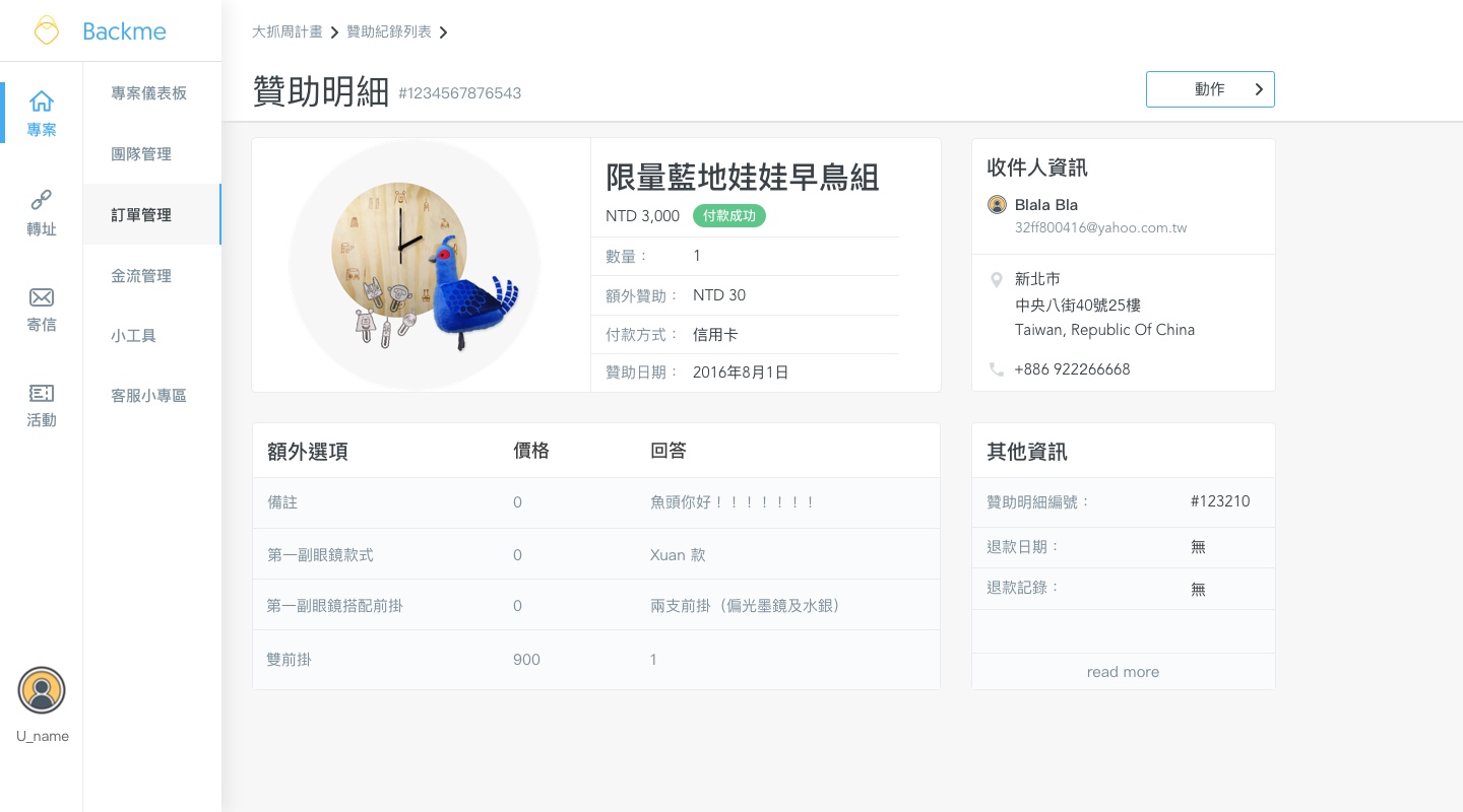 贊助清單及回饋品報表、電子報寄發